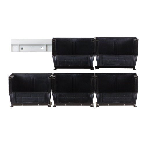 Hang-and-stack bin complete package is a modifiable storage system; can be extended with a variety of accessories including extra bins and rails C...