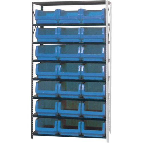 Heavy-duty grey enamel shelves Shipped knocked down Includes: (72) Euro drawer bins Specifications Kit Type: Starter No. of Shelves: 13 Shelf Cap...