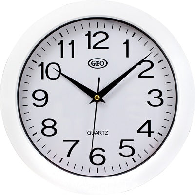 Geo Wall Clock. Round 10" face, black or white frame.