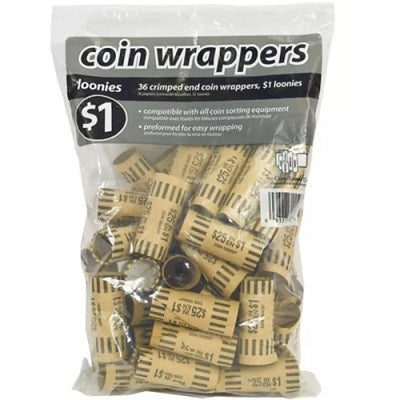 View full detailsCoin Wrappers-Paper Preformed Loonie, 36/Pack