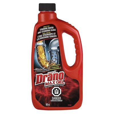 The thick bleach formula in Drano Max Gel Clog Remover cuts right through standing water, clinging to your toughest clogs to blast them fast. It wo...