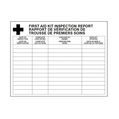 First Aid Central First Aid Kit Inspection Report Card. Adhesive labels for proper first aid kit maintenance and regulatory compliance. Encourages ...