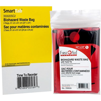 First Aid Central SmartCompliance refill biohazard bag. Use for safe and proper disposal of bio-hazardous materal. Imprinted on bag. 2.5 ml. 24" x ...