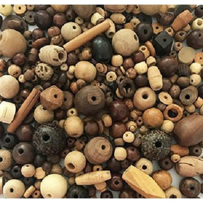 DBLG Assorted Wood Beads. A large selection of sizes and shapes in a variety of natural wood colours. 250 grams/pack.
