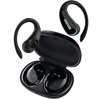 Maxell True Wireless Earbuds with Earhooks. These wireless earbuds use Bluetooth 5.0. The included charging case protects, as well as charges. LED ...