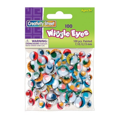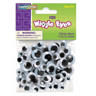 Creative Street Wiggle eyes. These packages feature 100 wiggle eyes total. There are 25 each of four different sizes: 7 mm, 10 mm, 12 mm and 15 mm....