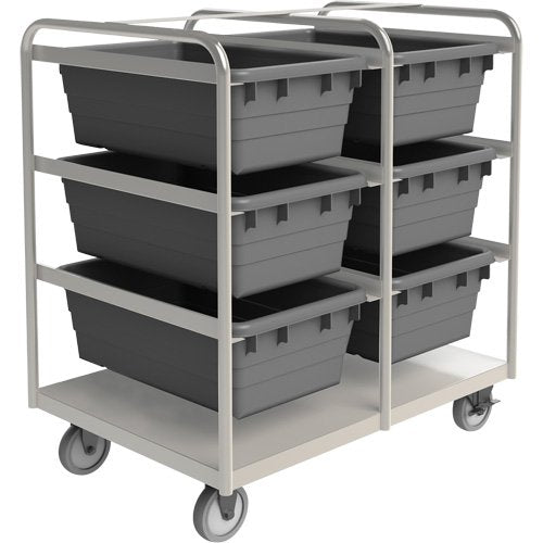 Constructed of 14 gauge steel with plastic bins Durable grey, textured, powder coat finish Includes 5" x 1-1/2" polyolefin casters (2 swivel and 2...