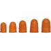 Westcott Friction surface Flexible rubber. High quality, non-ventilated. Includes 1 extra small (00), 3 small (0), 4 medium (1), 3 large (2) and 1 thumb (3). Amber. 12/box.