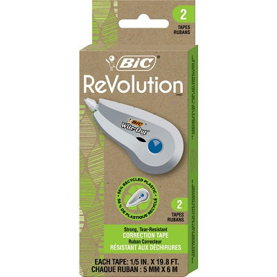 BIC Wite-Out ReVolution dispenser made from 56% recycled plastic. 2 per pack.