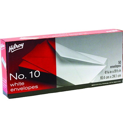 Hilroy 20lb.white envelopes, 4-1/8" x 9-1/2”. Gummed seal and diagonal seam V-flap construction. Convenient smaller package.