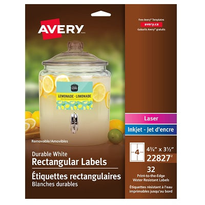 Avery® Removable Durable Rectangular Labels for laser and inkjet printers. Take your branding message outdoors with confidence with these durable r...