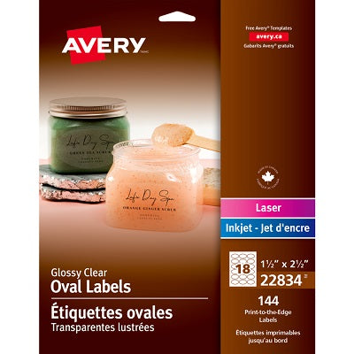 Avery® Oval 1-1/2" x 2-1/2" labels. Personalize your project or product with a custom, printed on look. Labels hold firm to most smooth surfaces li...