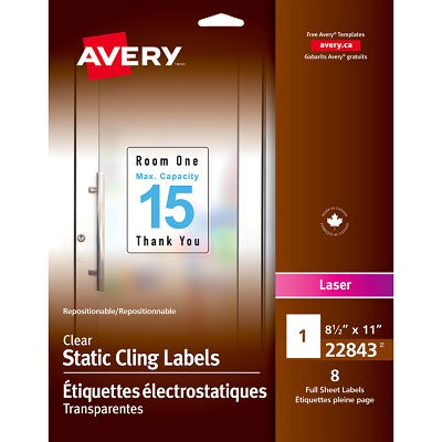 Avery Clear Static Cling Labels adhere to glass, mirror, and other smooth surfaces without leaving residue when removed. Made of durable, tear-resi...