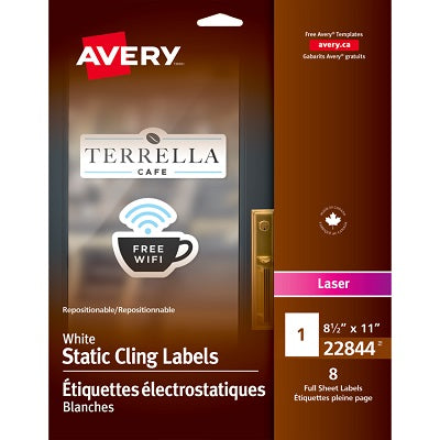 Avery® White Static Cling Labels adhere to glass, mirror, and other smooth surfaces without leaving residue when removed. Made of durable, tear-res...