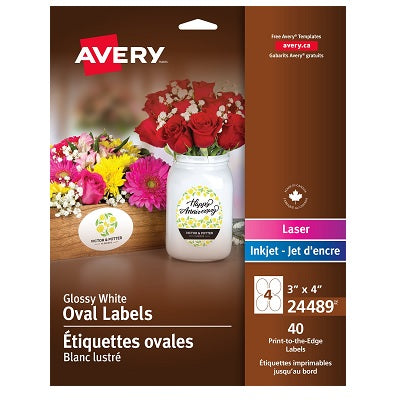 Avery® Glossy White Oval Labels for laser and inkjet printers. These labels are the perfect addition to brand packaging, products, mailings, promot...