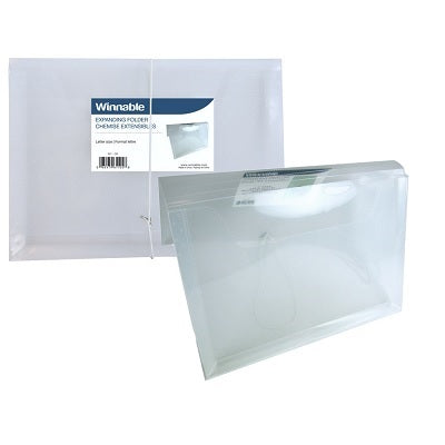 Winnable® Expanding Folder. Legal size. Elastic closure. 1.5" expansion. Up to 200 sheet capacity. 15" x 10". Clear.