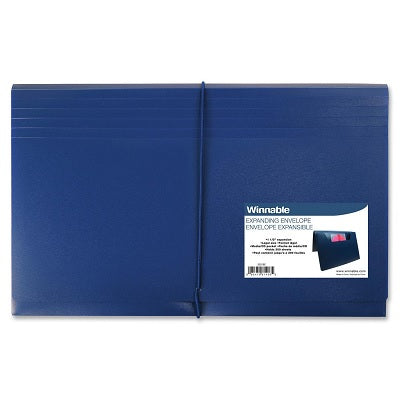 Winnable® Expanding Folder. Legal size. Elastic closure. 1.5" expansion. Up to 200 sheet capacity. 15" x 10". Blue.