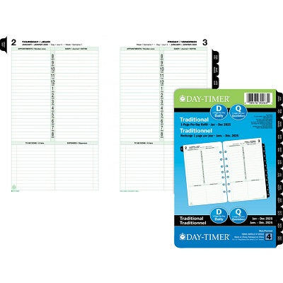 Day-Timer Daily Organizer Refills. Desk size. 5-1⁄2" x 8-1/2". Two pages per day. Contains a minimum of 30% post-consumer recycled material. Bilin...