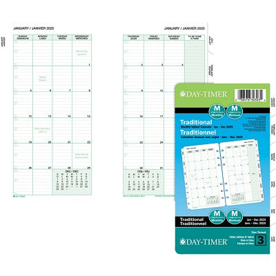 Day-Timer Monthly Organizer Refills. Portable size. 3-3⁄4" × 6-3⁄4". Two pages per month. Contains a minimum of 30% post-consumer recycled material.