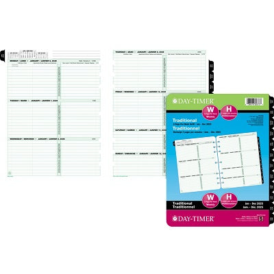 Day-Timer Weekly Organizer Refills. Portable size. 3-3⁄4" × 6-3⁄4". Two pages per week. Contains a minimum of 30% post-consumer recycled material. ...
