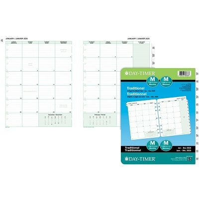 Day-Timer Monthly Organizer Refills. Desk size. 5-1⁄2" × 8-1⁄2". Two pages per month. Contains a minimum of 30% post-consumer recycled material. Bi...