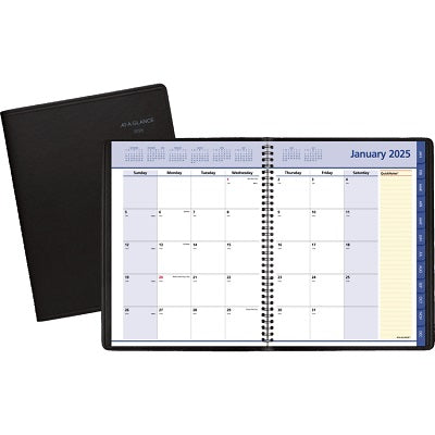At-A-Glance QuickNotes Appointment Book. Twin coil bound with a simulated leather cover. 12 months tabbed (January -December). One week per two-pag...