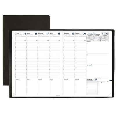 Quo Vadis Prenote Weekly Planner. 13 months (December to December). Features 1 week on 2 pages with a daily notes section and appointments schedule...