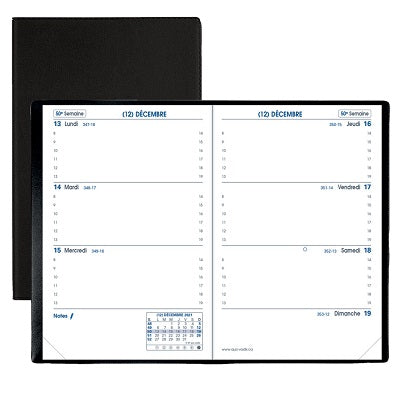 Quo Vadis President Weekly Planner. 13 months (December to December). Features 1 week on 2 pages and appointments schedule from 8:00 a.m. to 9:00 p...