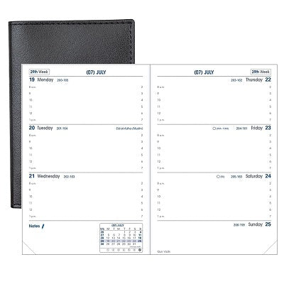 Quo Vadis SapaX Freeport Weekly Pocket Diary. Sewn bound. Flexible cover. 1 week per 2-page spread. 8:00 a.m. to 7:00 p.m. in 1 hour intervals. Not...