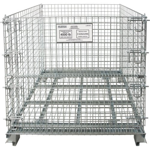 Welded, mesh wire maximizes visibility and ventilation Can be stacked up to 4 high Features a drop gate for easy access to products Equipped with ...