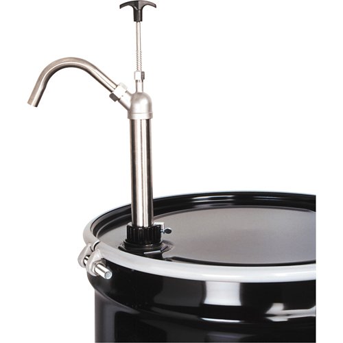 For most water-soluble inorganic acids, waxes, detergents Fits 5-gallon pails with a 2" bung adaptor Transfer rate: 8 oz. per stroke WARNING! Chem...