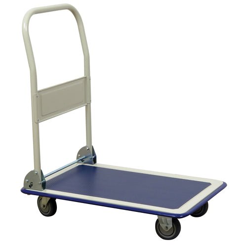 Fold down handle for easy storage Enameled finish with non-skid heavy vinyl deck surface 4" caster wheels TPR non-marking rubber Protective vinyl ...
