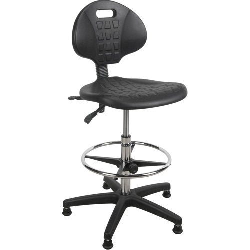Polyurethane seating offers puncture and stain resistance Pneumatic height adjustment Sturdy 5-leg base Features nylon swivel stem casters, suitab...