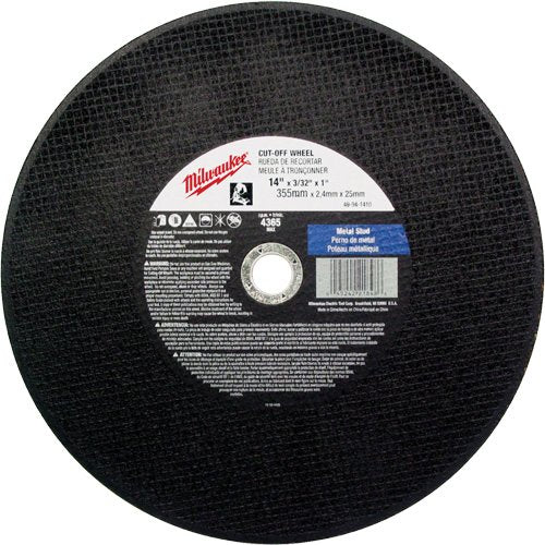 Tested for balance, resulting in smooth, vibration free grinding and cutting Specifications Diameter: 14" Thickness: 3/32" Arbor Size: 1" Max. RP...