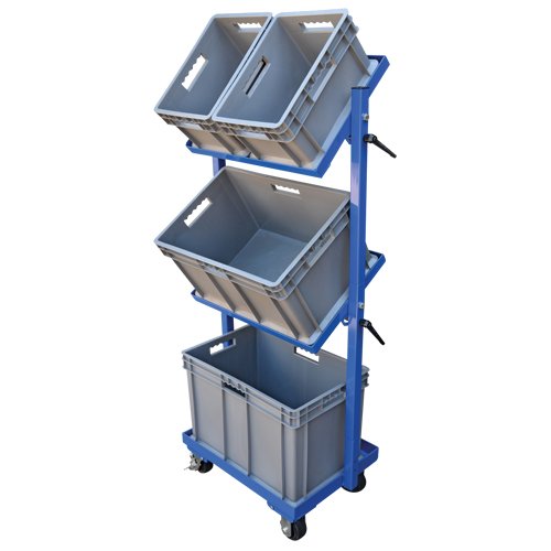 Features tilting design for better access to parts Includes: (2) Bins, (1) Stock cart Shelves can be locked in place Specifications No. of Shelve...