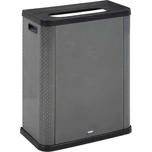Heavy-gauge steel recycler with a damage-resistant powder coat finish features contoured edges and magnetic connections that keep receptacles perf...