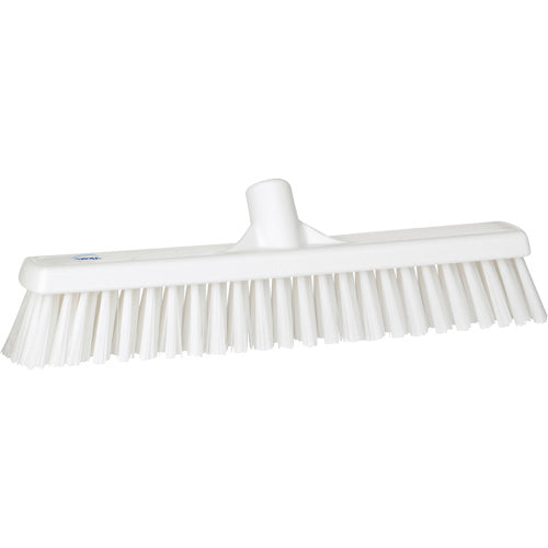 The angled design of this broom makes it easy to reach into narrow spaces between equipment when sweeping debris before the scrubbing action start...
