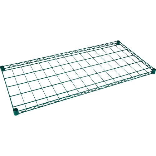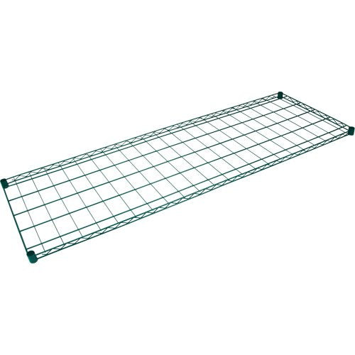 Green epoxy wire shelving is ideal for use in wet environments 3" wire spacing ideal for drying produce Superior rust resistance Designed to minim...