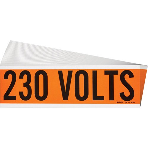 Orange ASME-compliant conduit and voltage labels alert employees to potentially dangerous machinery or energized equipment Orange markers meet ASM...
