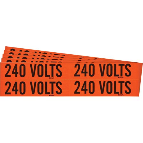 Orange ASME-compliant conduit and voltage labels alert employees to potentially dangerous machinery or energized equipment Orange markers meet ASM...