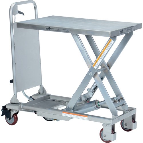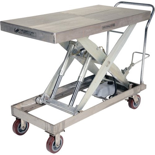 Specifications Platform Dimensions: 47" L x 24" W Capacity: 2000 lbs. Raised Height: 15" Lowered Height: 39" Frame Material: Partial Stainless Ste...