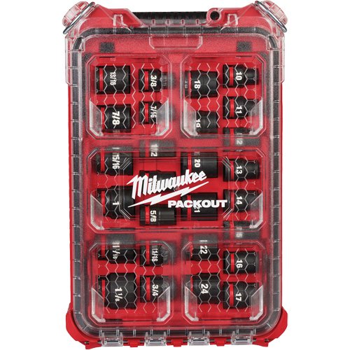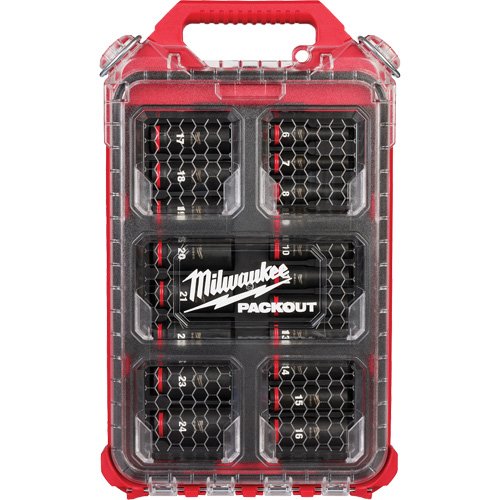 Optimized for use with 1/2" drive impact wrenches, drivers, ratchets, and adapters Set comes in PACKOUT™ Organizer Stamped and ink filled diameter...