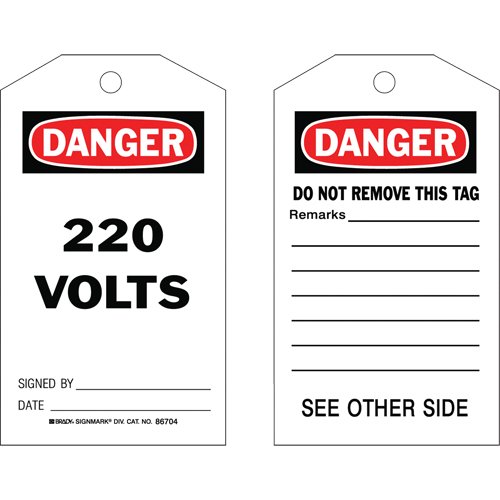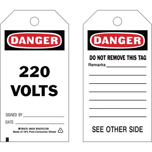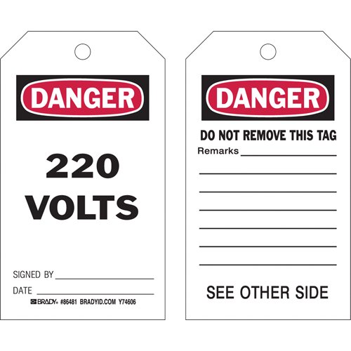 Specifications Language: English Material: Cardstock Width: 3" Height: 5-3/4" Additional Specifications Legend: Danger 220 Volts