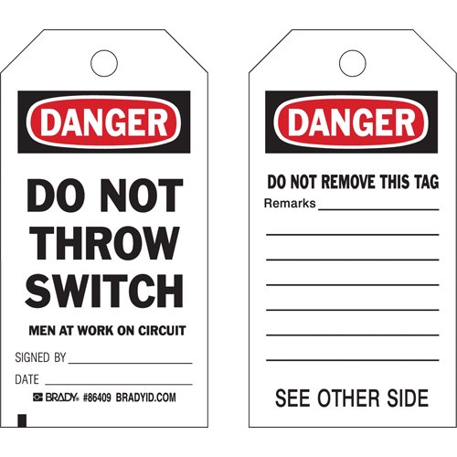 Specifications Language: English Material: Cardstock Width: 4" Height: 7" Additional Specifications Legend: Danger Do Not Throw Switch Men At Wor...