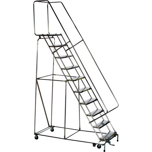 Specifications Frame Material: Steel No. of Steps: 12 Platform Height: 120" Platform Depth: 14" Step Type: 50° Step Incline: 50° Step Width: 24" A...