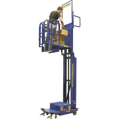 Merchandise can be raised to shelf level and easily slide on and off to minimize lifting Pivoting guardrails allow for easy loading and unloading ...