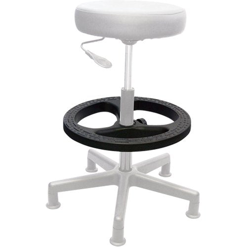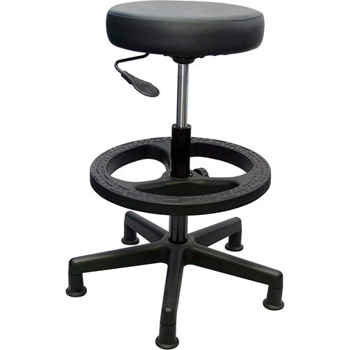 Pneumatic seat height adjustment Sturdy 5-leg, glass reinforced, nylon base 3" padded upholstered seat Nylon foot ring Specifications Colour: Bla...