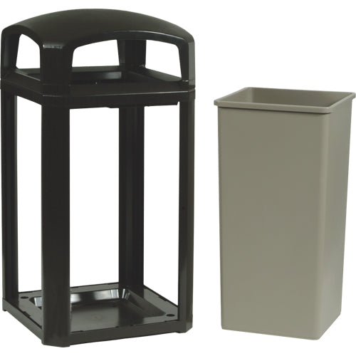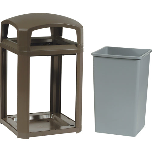 LANDMARK ™ CONT. W/RIGID LINER Rain hood cover with openings on all four sides allows for year-round indoor or outdoor container use Hinged hood, ...