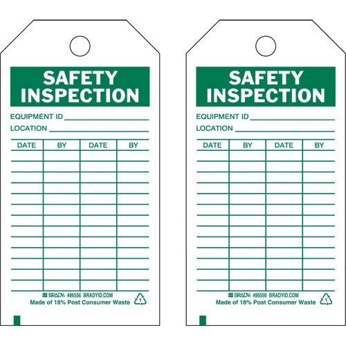 Tags inform employees of the inspection history and status of equipment or materials Write-on polyester laminate protects the graphics, wipes clea...