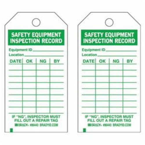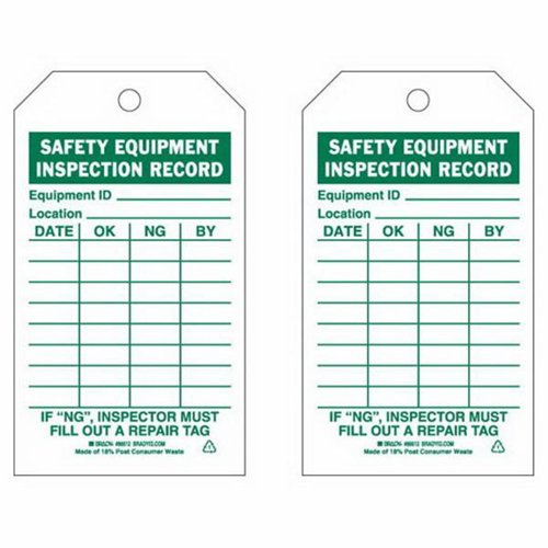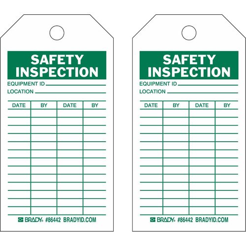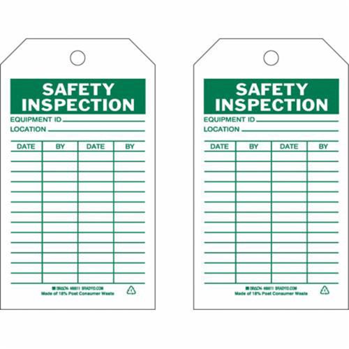 Tags inform employees that equipment has been inspected, and is safe and in good condition Write-on polyester laminate protects the graphics, wipe...